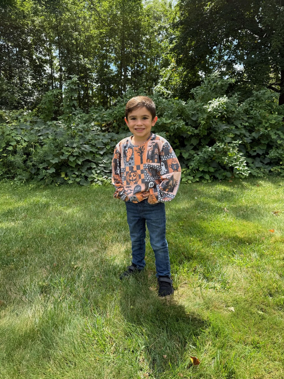 Celebrate fall in comfort with this unisex oversized sweater, bursting with a fun print of seasonal favorites. Its loose fit makes it perfect for chilly days.