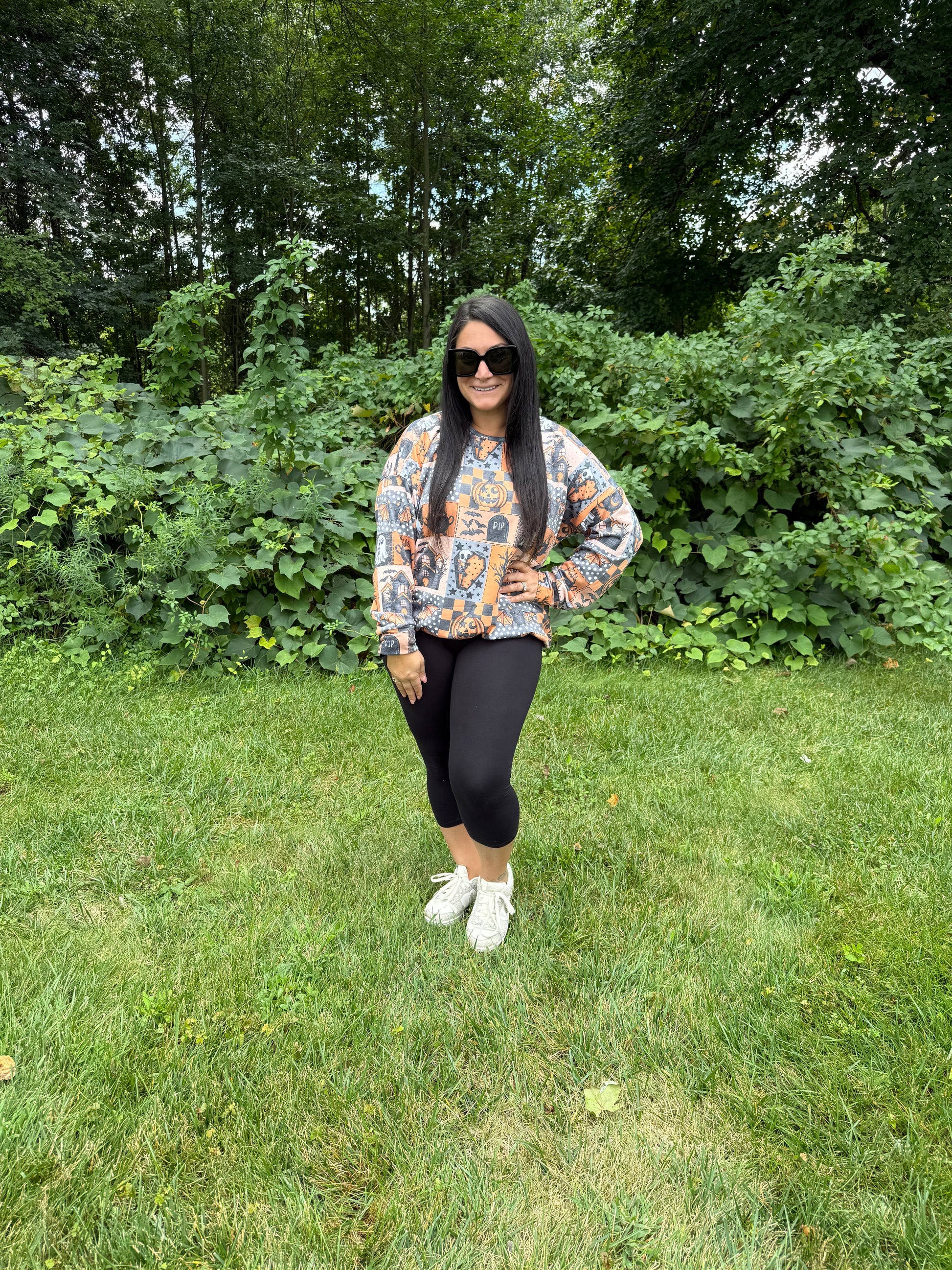 Cozy up in this oversized sweater that's perfect for embracing the spooky season with comfort and style. Its roomy fit makes it ideal for layering, keeping you warm and festive whether you're out trick-or-treating or relaxing at home.